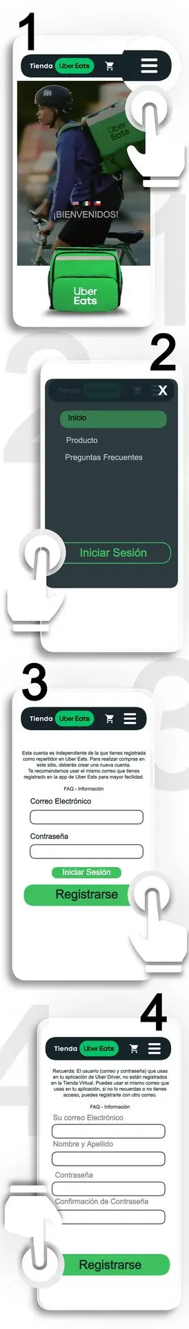 Tenga presente que el usuario (correo electrónico y contraseña) que usa en su aplicación de Uber Driver, no están registrados en la Tienda Uber Eats. Para registrarse, puede usar el mismo correo que usa en su aplicación, pero si no lo recuerda o no tienes acceso, puede hacerlo con otro.